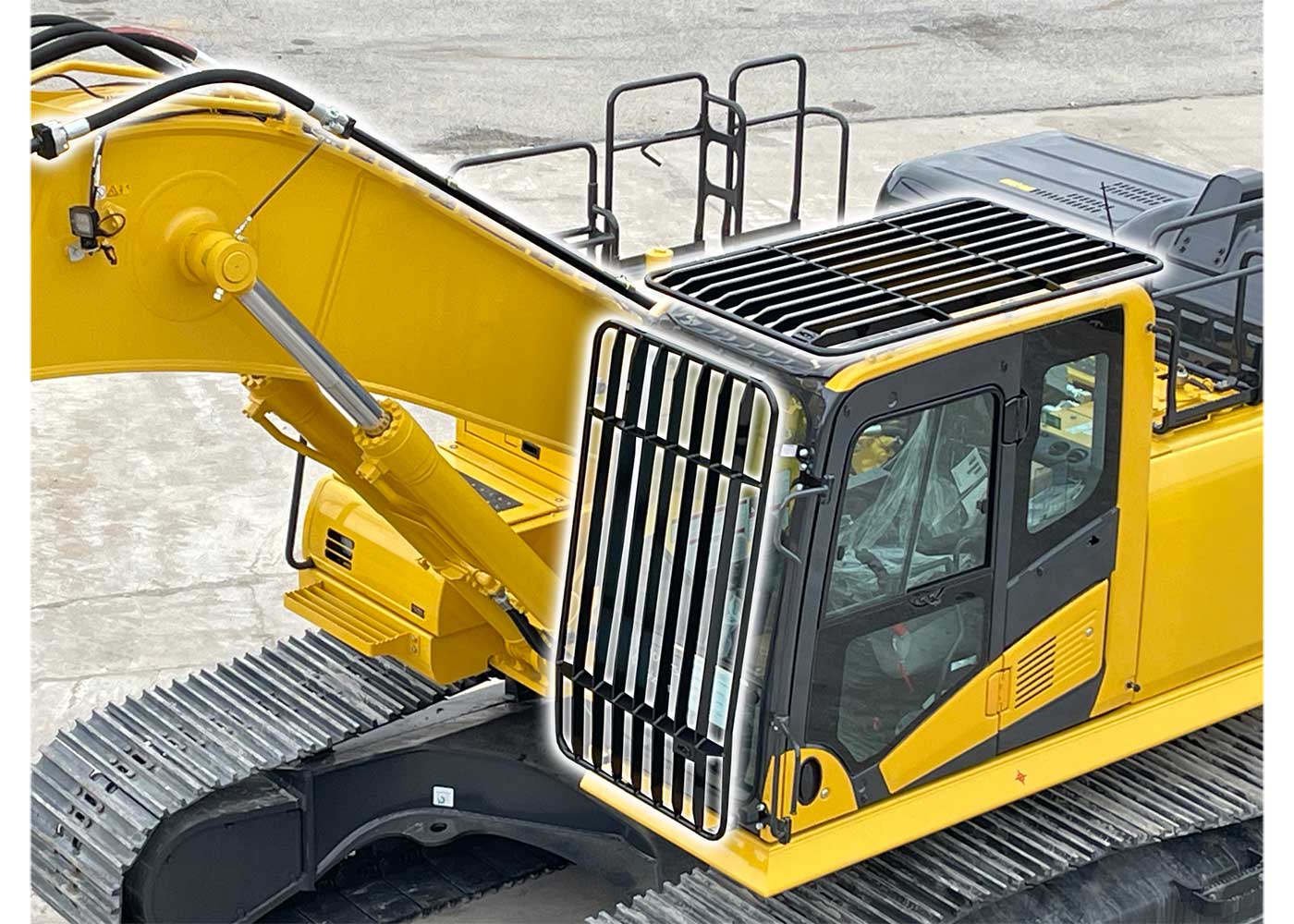 Protect your excavator’s cab and windshield with one of our bolt-on Guard Kits!